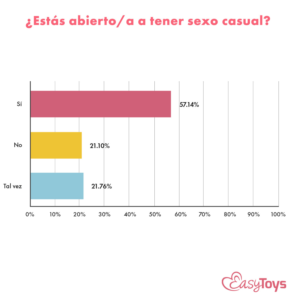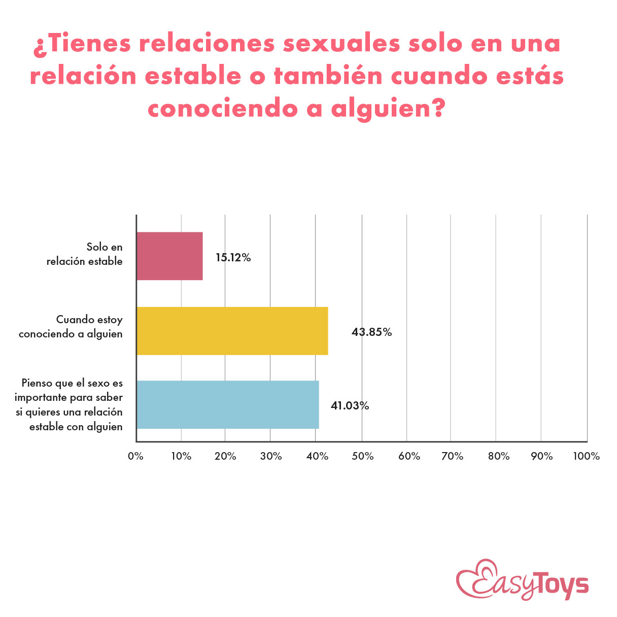 Los años pasan y los tabúes se rompen cada vez más. Los españoles ya no se conforman con el clásico misionero, sino que buscan explorar nuevas fantasías y sensaciones entre las sábanas. A fin de complacer y ayudar a mejorar el bienestar sexual, realizamos un estudio para conocer las nuevas tendencias y gustos en las artes amatorias de los españoles. De los que participaron en el estudio, la mayoría se encuentra en una relación estable, pero estar soltero tampoco les impide que puedan disfrutar de una vida sexual plena, el 57.14% practica sexo sexo casual y considera que el sexo es importante para saber si quieres una relación estable con alguien. Solo un 15.12% dijo que solo mantiene sexo en una relación estable. La diferencia también es notoria entre las ciudades grandes como Madrid y Barcelona y los pueblos pequeños que aún siguen siendo conservadores.