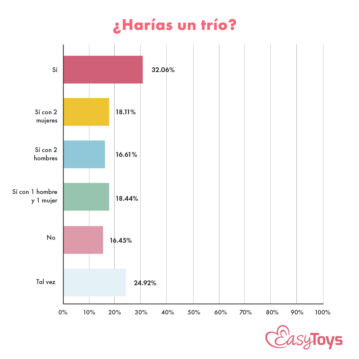 Entre las respuestas más picantes, están quienes practican soft BDSM, atan las manos de su pareja a la espalda, con los ojos vendados y penetración por detrás. También practican atar a la pareja a la cama y azotarla suavemente y/o hacerle un masaje erótico. El 67,94% se muestra abierto a realizar trios. Siendo las preferencias por sexo salvaje y sexo suave casi iguales. Al igual que la preferencia por usar o no condón. El 48.34% prefiere usarlo, a fin de evitar no solo embarazos, sino también enfermedades de transmisión sexual.